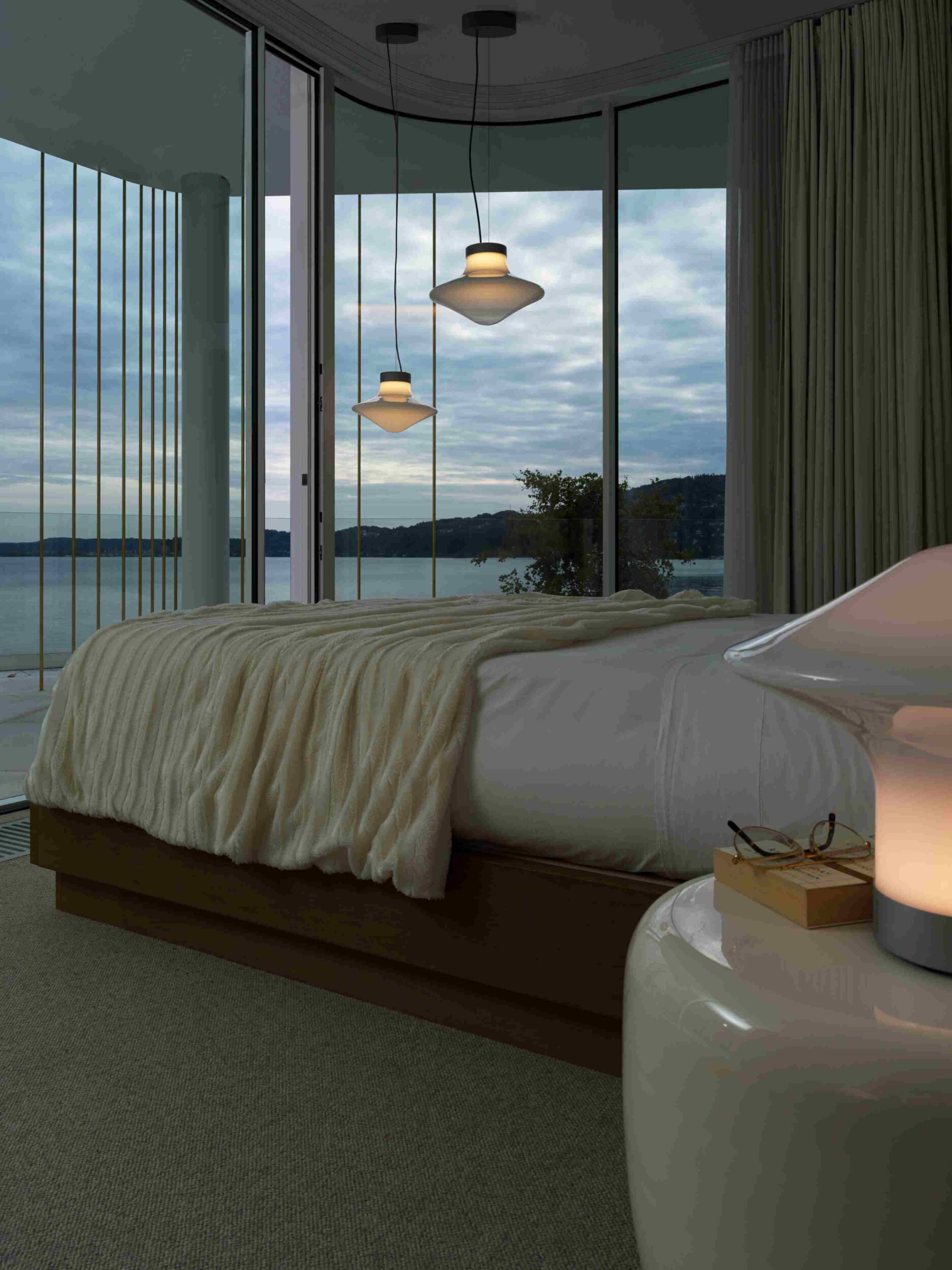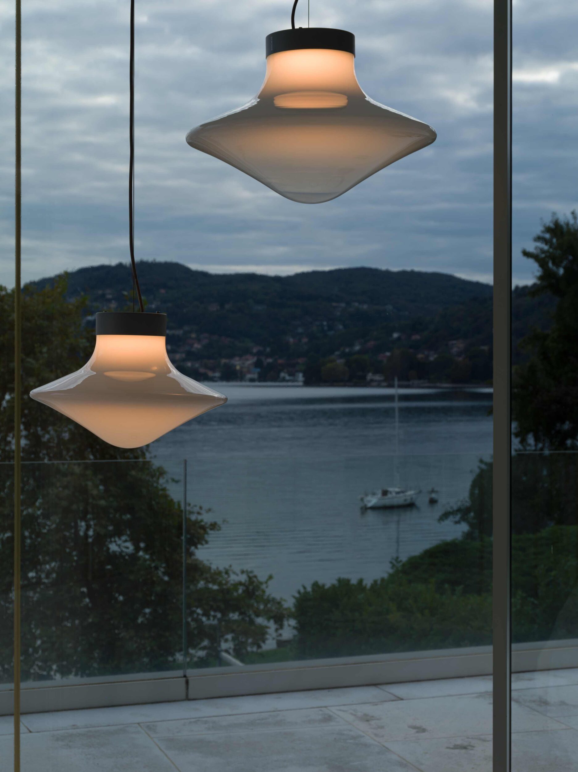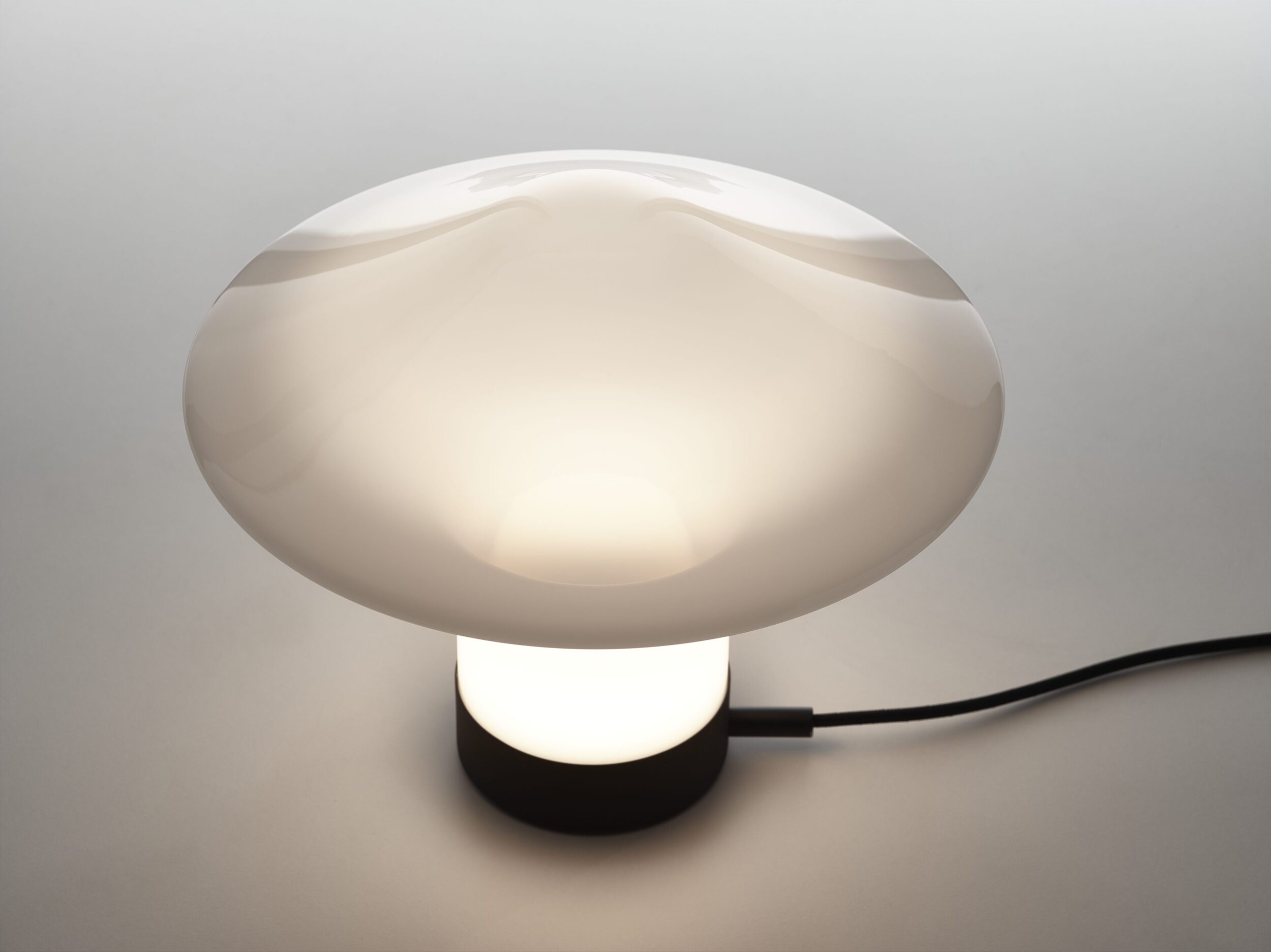 Trottola is a collection of suspension and table lights whose shape elicits memories of a popular childhood toy – the spinning top. The aesthetics of the design are carried on an enchanting luminance that passes through an opal diffusor and opaline glass to reveal a playful contrast of shadows and light. The LED source is housed in a base clad in pressed aluminium, which in turn is finished in an attractive black or silver anodized. Brightness and light temperature can be adjusted with a simple turn of the elegant dimmer by the table versions of the collection. Trottola offers two sizes of suspension and table lights in handblown opaline glass. The table variant is fitted with the innovative BROKIS connector, which makes it easy to disconnect the light and move it about the interior and also facilitates disassembly for maintenance and cleaning. As if by magic, the semi-transparent object comes to life with a gentle glow to reveal a fascinating playscape of shapes and shadows in the interior.