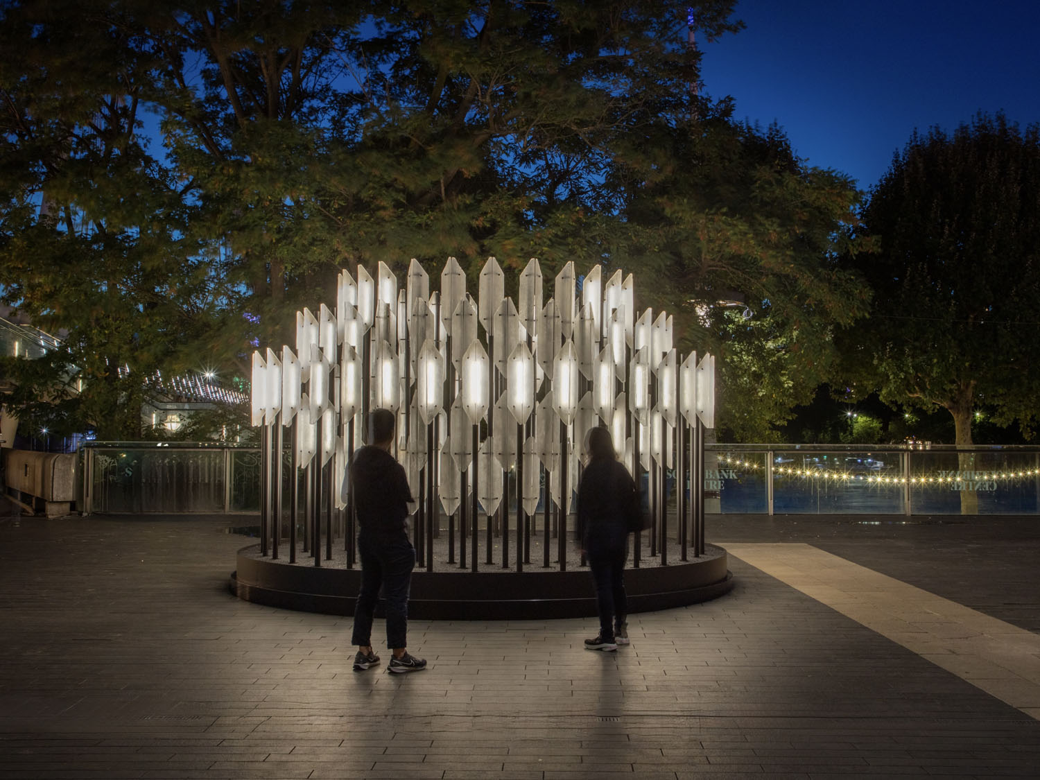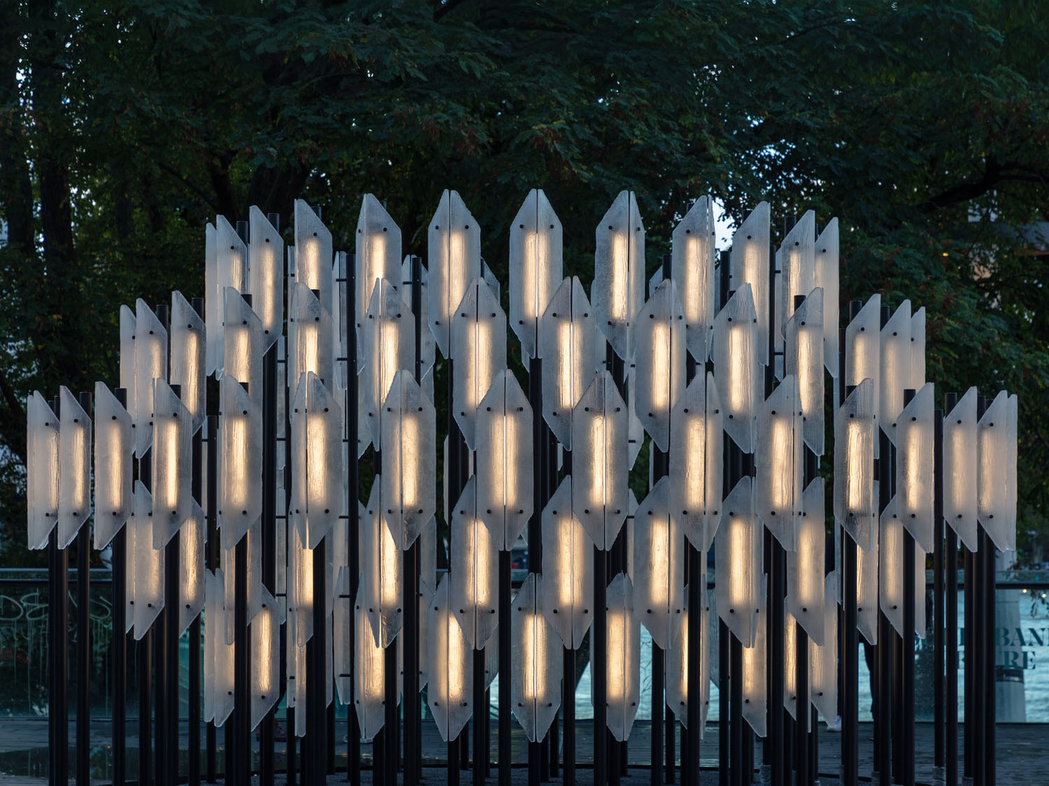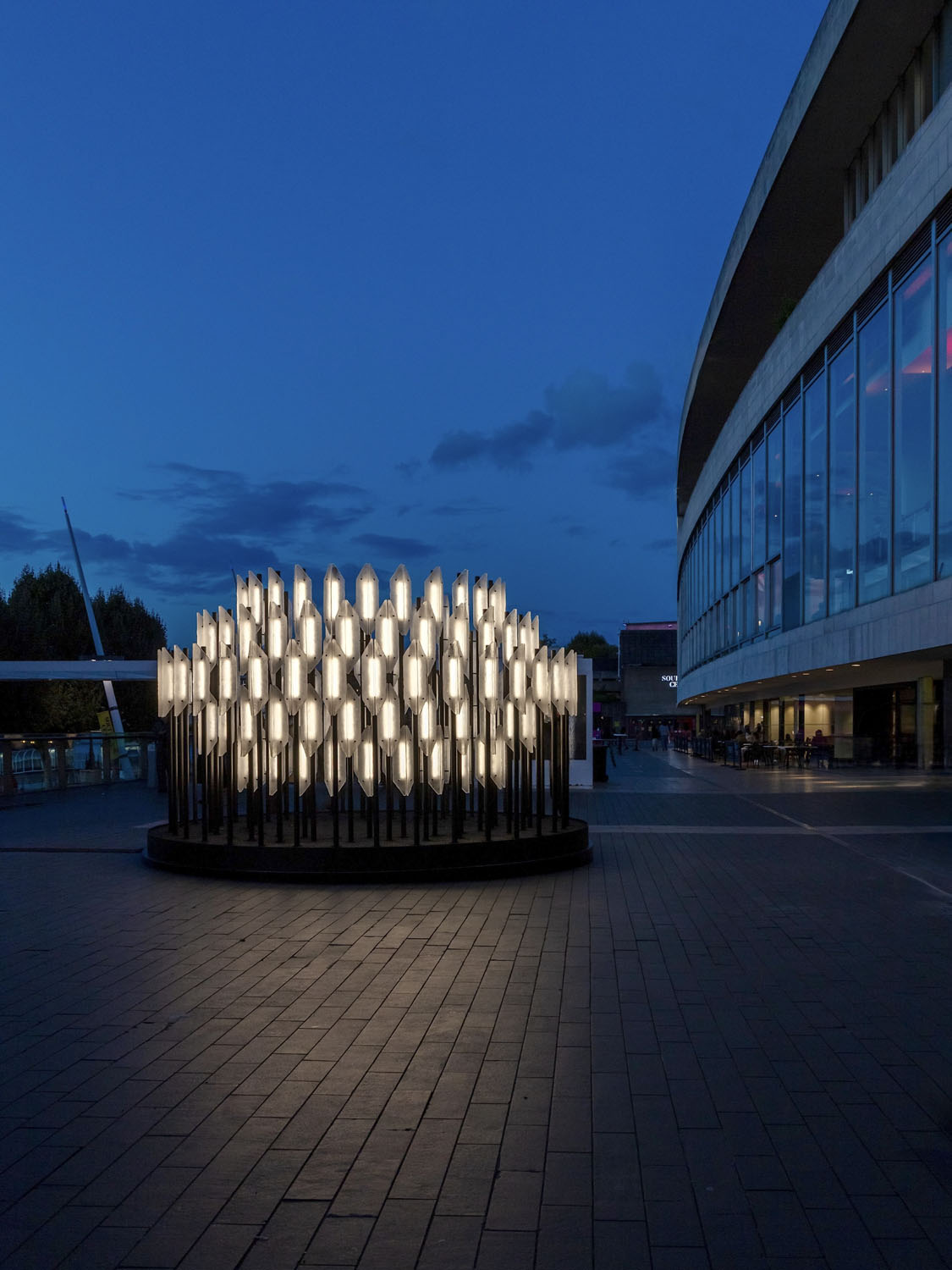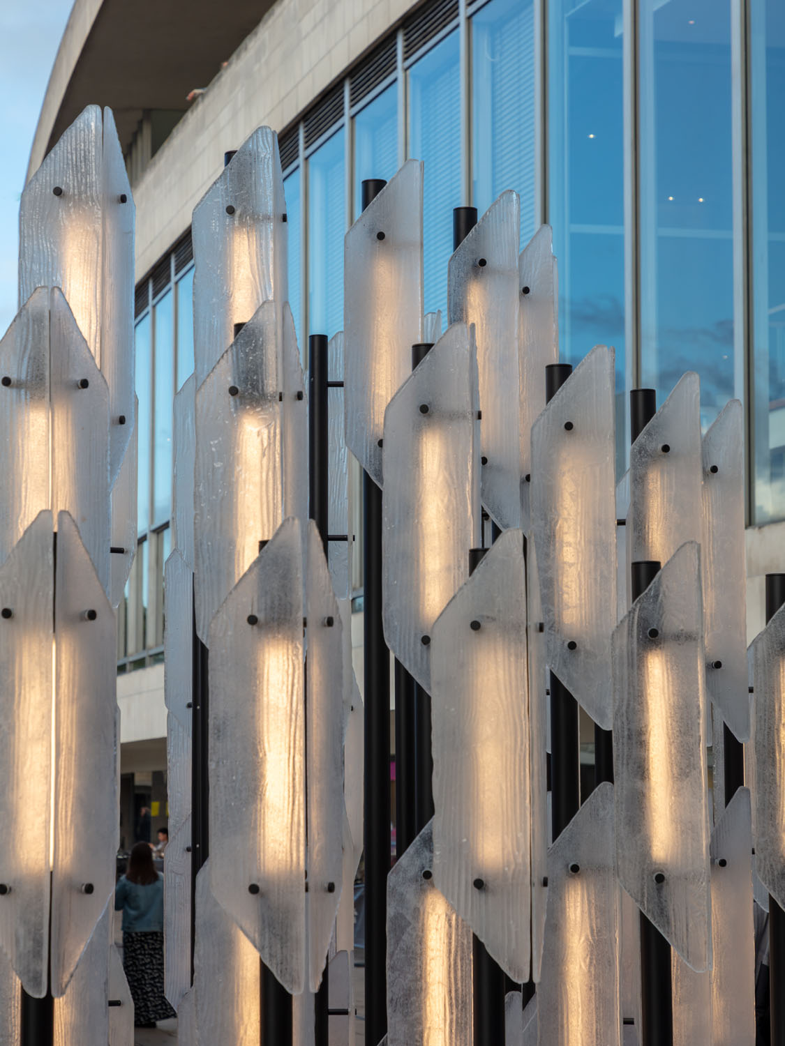 Comprising 292 segments of BROKISGLASS – a distinctive material crafted from recycled glass shards – Beacon takes its cue from the bold, uncompromising lines of the brutalist Hayward Gallery, beside which the work will stand on the South Bank.