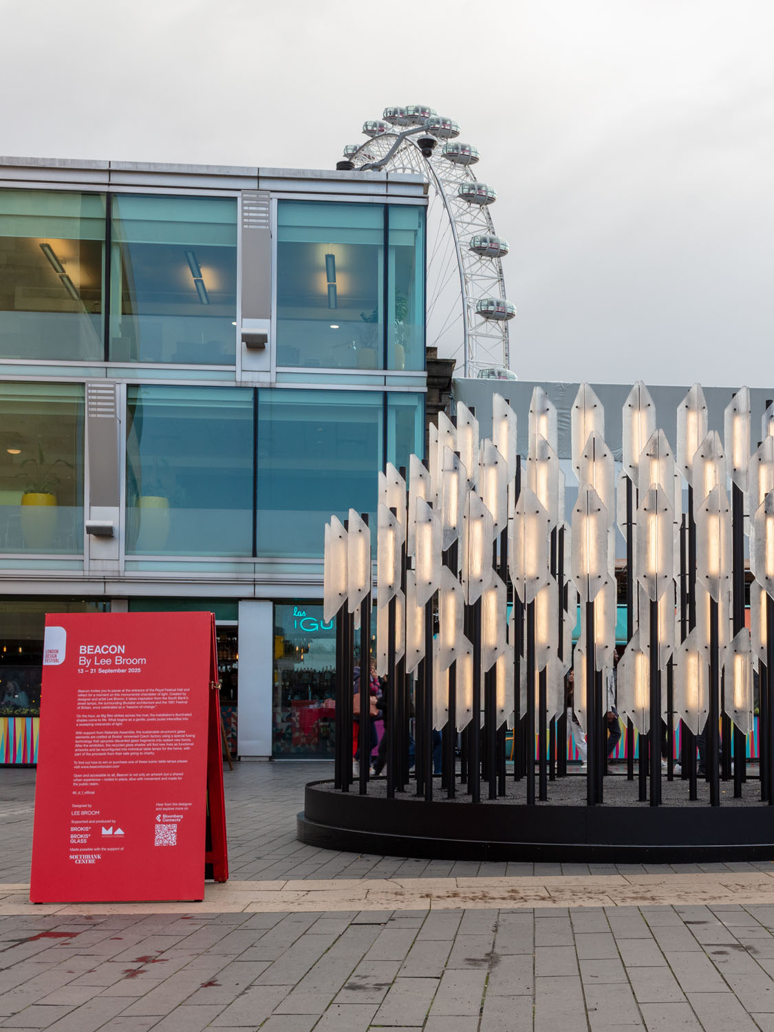 BEACON – a monumental light installation in the heart of London. With production and support from BROKIS and MATERIALS ASSEMBLE, and additional support from Southbank Centre, this installation by world‑renowned British designer Lee Broom is being presented at the London Design Festival from 13 to 21 September 2025 on London’s South Bank.