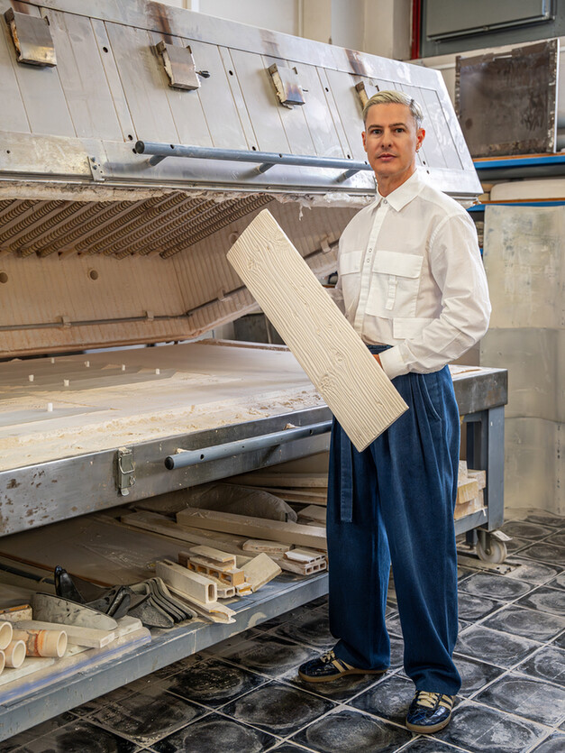 Broom collaborates with some of the most prestigious brands – Christian Louboutin, Mulberry, Bergdorf Goodman, Rémy Martin XO, and Wedgwood – and his designs appear on magazine covers worldwide. They are unique yet familiar, drawing on classical styles that he reinterprets in unexpected ways.
